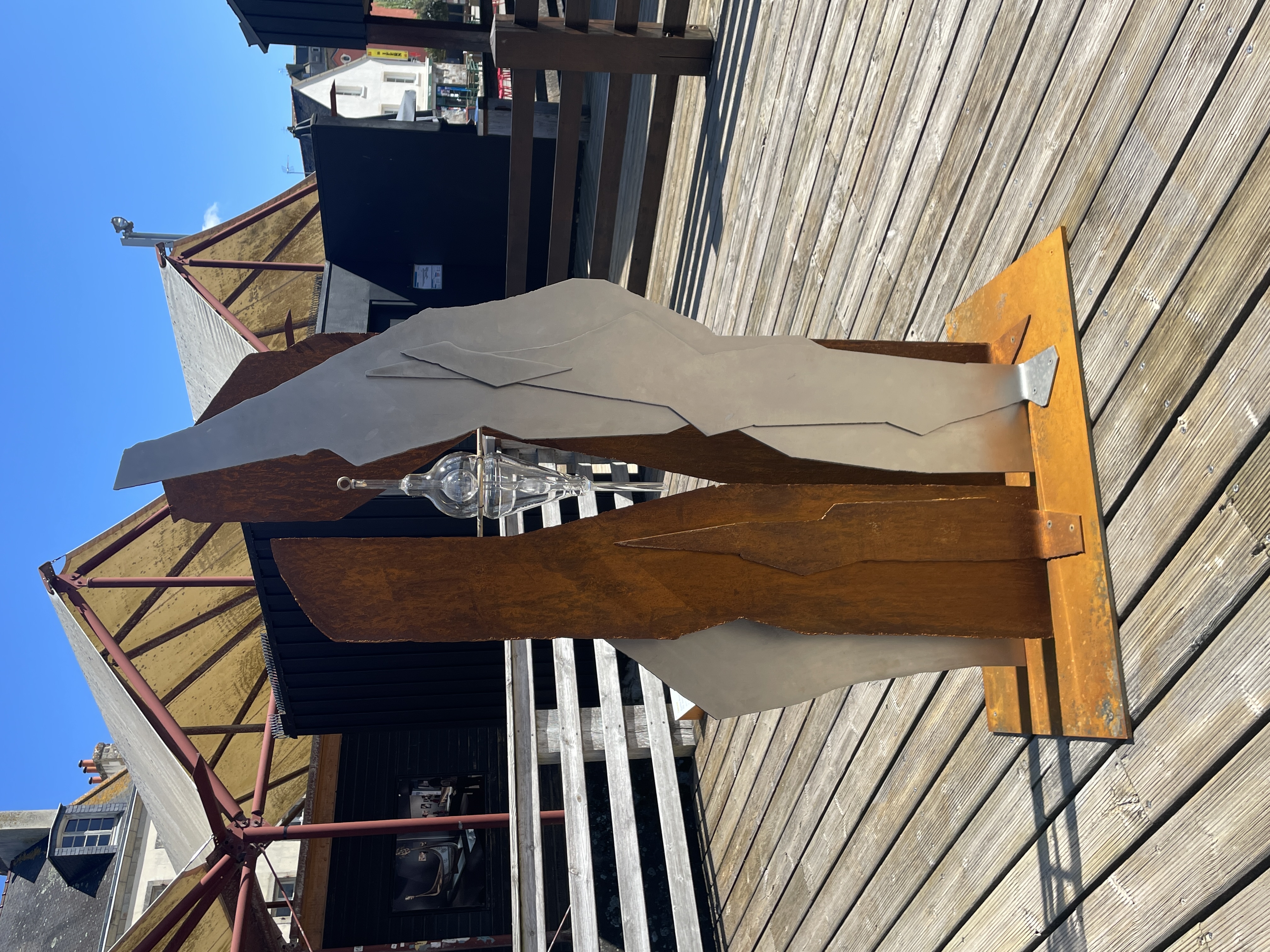 acier corten, inox, laiton & verre borosilicaté, H 180cm, 2022